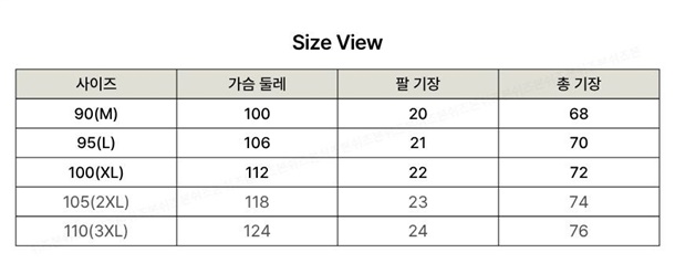 90(M),95(L),100(XL),105(2XL),110(3XL),115(4XL)